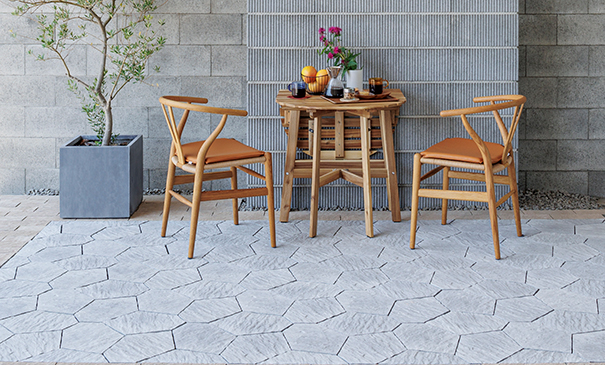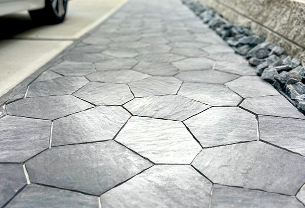 フローは、そうした意匠性への憧れに、独自形状とシンプルな施工性で応える舗装材。