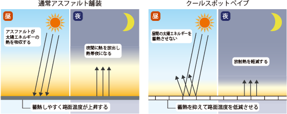 Qクールスポットペイブはどのような仕組みで路面温度を低下させているのですか?